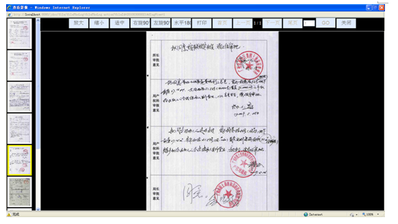 將紙質(zhì)檔案掃描成影像,調(diào)閱檔案時(shí),通過局域網(wǎng)便可查閱,提高了調(diào)檔的效率。