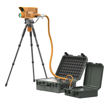 光學(xué)破拆裝置內(nèi)置高能光纖激光器,能夠從地面發(fā)射激光對(duì)鋼板、鋁板、鋼筋、彩鋼瓦、樹(shù)木、塑料、馬蜂窩等進(jìn)行遠(yuǎn)距離切割清除。