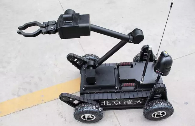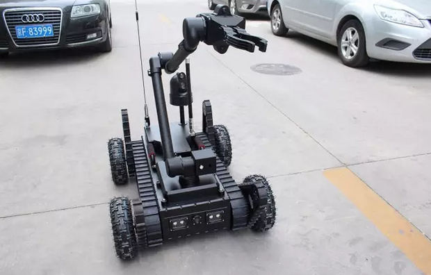 機械臂部分配備爆炸物銷毀器、瞄準器,能現場對爆炸物進行摧毀;