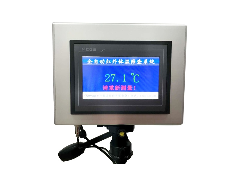 全自動紅外體溫篩查系統是由非接觸式紅外探頭,傳感器,光 學系統,智能檢測控制系統,高清7寸觸摸顯示屏等部分組成.能夠 在不接觸人體的情況下,依據人體發射紅外輻射強度,轉換成實際 的溫度數值,并通過人機交互界面進行顯示和報警.高清屏幕顯示, 可保證測量結果清晰可見,高溫聲光報警有助于工作人員快速篩 查可疑人員;該產品可以同三腳架搭配 使用,方便攜帶和快速部署,可應用于機 場、港口、車站、學校、賓館和醫院等 公共場所的體溫篩檢;