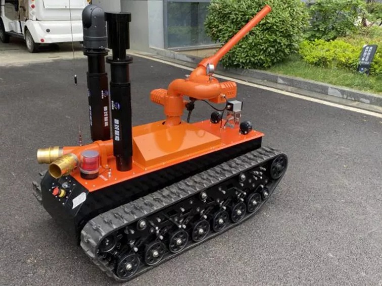 消防干粉滅火機器人作為特噴射種機器人的一種,采用鋰電池電源作為動力電源,使用無線遙控的方式遠距離操控粉劑物料機器人,能夠與粉劑物料車連接,通過噴射粉劑進行滅火等作業。可使用于各種大型石油化工企業,隧道、地鐵等不斷增多,油品燃氣、毒氣泄漏爆炸、隧道、地鐵坍塌等災害隱患多發地,滅火機器人在搶險救援中發揮舉足輕重的作用,主要替代消防員在危化火場或濃煙火災現場救援的專用設備