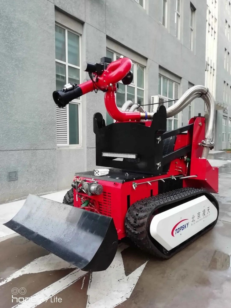 消防滅火偵查機器人,是代替消防員近攻火災現場的理想設備。其功用包括:降塵降溫,水/泡沫滅火噴射,火場視頻信息/環境偵查等實時觀測;它運動靈活,可原地轉向,最大爬坡度 62.5%。無線遙控400m~1km以上,遠距離遙控操作確保消防員的人身安全,并達到最佳的安全作業效果。