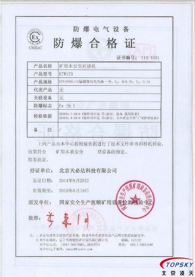 KTW179防爆對講機(jī)取得煤安、防爆認(rèn)證