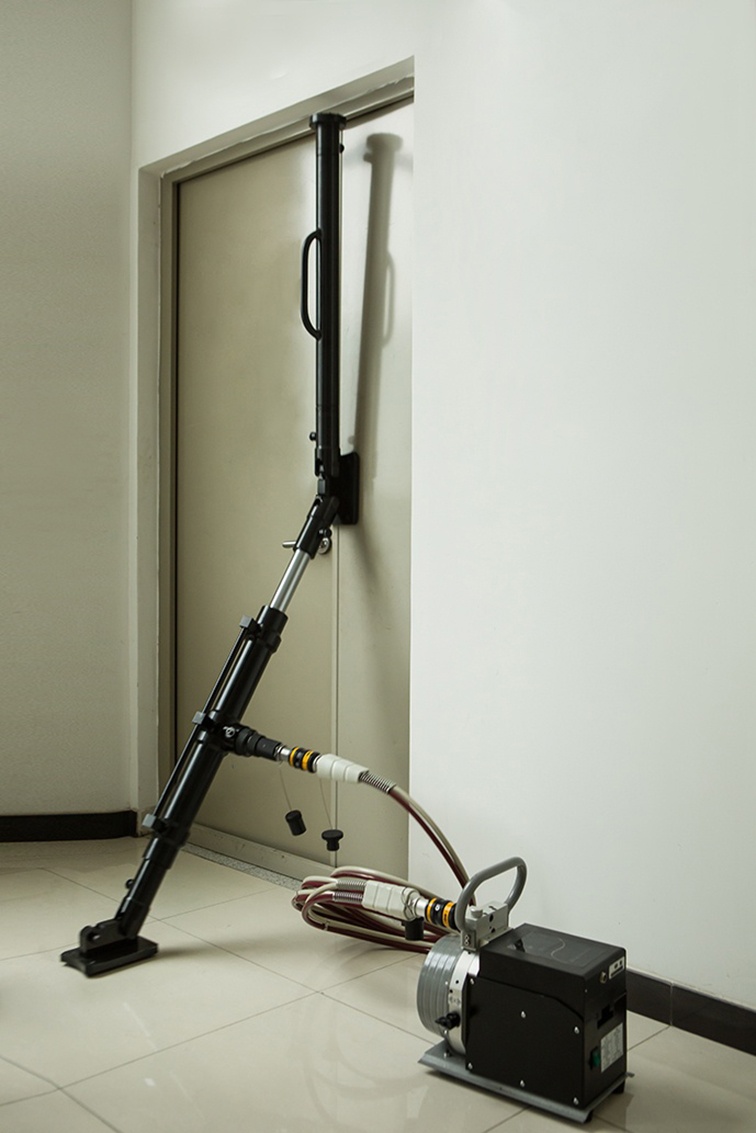 DB6重型電動液壓破門器是采用高強度復合材料制成,因此使其具有耐高壓、高溫、耐寒等特性,使其可以在各種復雜的環境下可以正常使用。高強度復合材料的機身,使其總體重量輕便,精美的結構設計,使其做到了理想的安裝快捷,使用方便等特點。DB6電動液壓破門器各部件之間均采用快速接頭,利用30°水平與地面的液壓支撐推力,底腳采用地刺接地方式,使其完美的做到了摩擦力與推力的結合。而在液壓泵方面,我們更是使用了充電式電動液壓泵,并采用雙向雙作用的的方式,使我們的DB6電動液壓破門器做到了不用外接電源便可在任意地點作業的工作方式,而雙向雙作用的工作方式,使得我們的液壓缸可以做到既可以自由頂出又可以自由收縮的特點,最終使我們的作業變的更人性化、操作更簡單。
