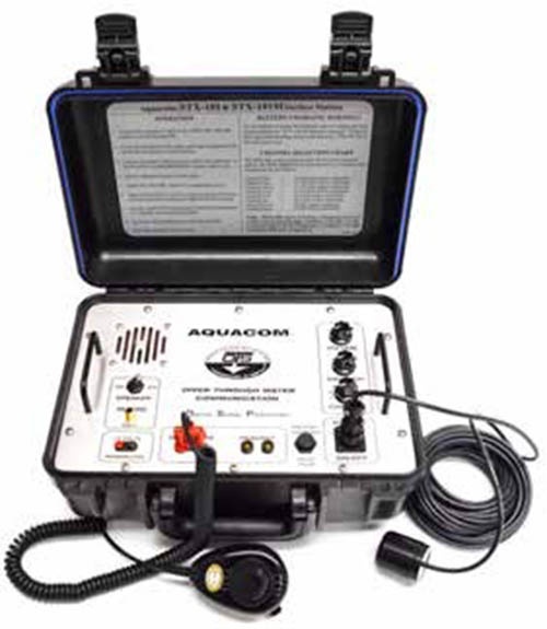 用于潛水員語音、數字通信及定位,具備水面指控系統、水面定位基陣、 水下潛水員單兵穿戴和顯示系統。通信距離1000-1500m,工作深度≥60m。