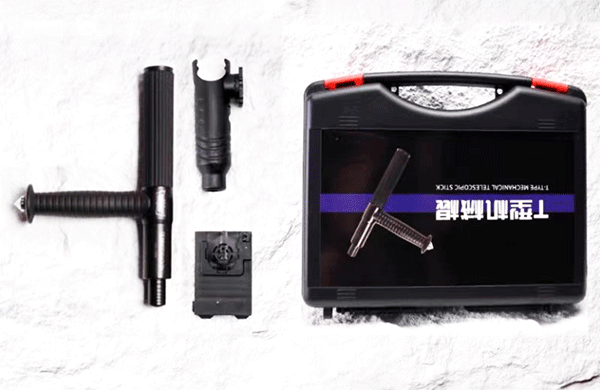 T型警棍又稱拐式警棍、丁字棍,通常采用工程塑料或高強度合金鋼等材質,由棍體及T型端組成,棍體分為握持端和擊打端,整體呈T字形。通過獨特設計,使其兼具攻擊與防御功能,是警務人員常用的制服、自衛、自救制式警械。