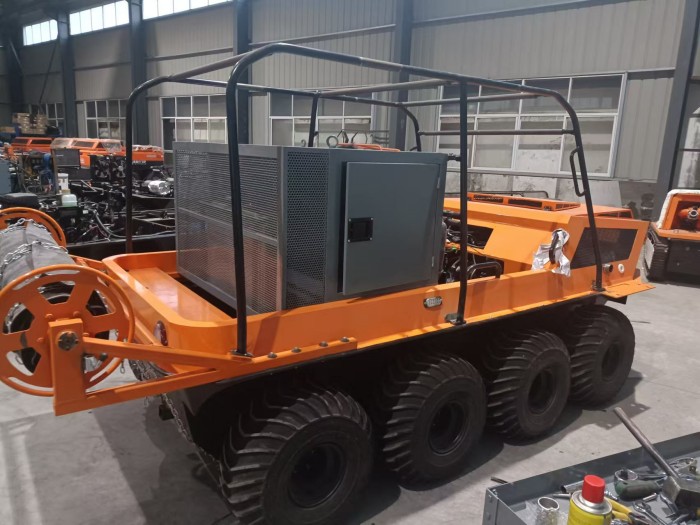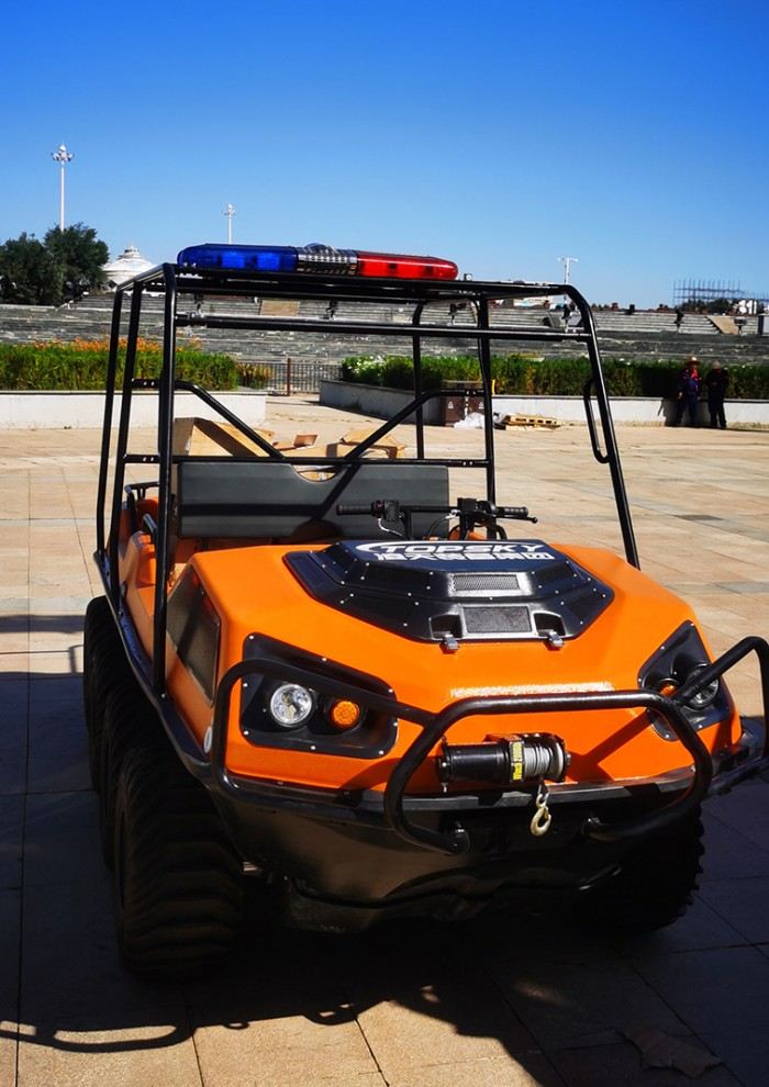 在復(fù)雜惡劣的地形條件和自然環(huán)境下,水陸兩棲全地形車可以讓搜救隊員和攜帶的救援裝備快速到達(dá)救援現(xiàn)場,減少徒步帶來提供消耗,完成最后一公里最好五分鐘緊急救援任務(wù)。水陸兩棲全地形車可配備點(diǎn)到絞盤、救援擔(dān)架組件、探照燈、警示燈、警報器、脫鉤、破拆工具等裝備, 給救援團(tuán)隊提供救援保障,更安全的解救傷員和疏散群眾。