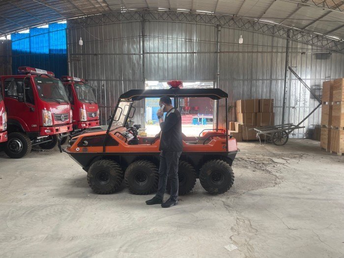 當(dāng)火災(zāi)出現(xiàn)時,在復(fù)雜地形和環(huán)境下,沒有時間等待重型救援裝備能順利及時到達(dá)現(xiàn)場。水陸兩棲全地形車可立刻準(zhǔn)備好,部署消防人員,使用車上搭載的噴霧和泡沫設(shè)備在現(xiàn)場抑制火源。配備同樣的裝備來保護(hù)火災(zāi)易發(fā)地區(qū),風(fēng)險(xiǎn)防范于未然。