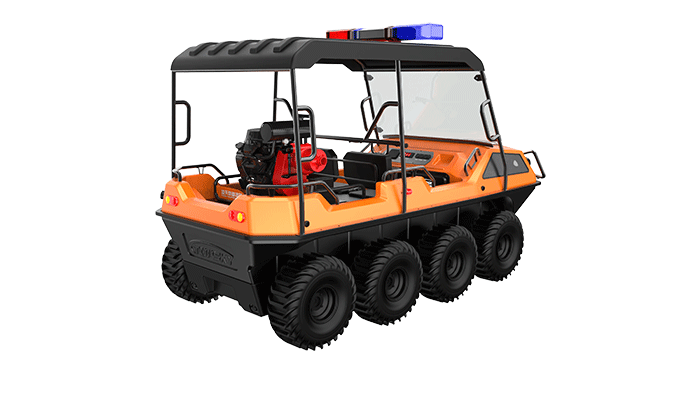 針對水災頻發的地區,水域救援任務必不可少。但往往洪澇災害、城市內澇往往伴隨著惡劣的天氣和崎嶇的地形,沖鋒舟需要多次搭載不同交通工具并數次轉移,森林消防水陸兩棲全地形車可以輕松通過水淹、泥濘、沼澤等環境,無需人力搬運,實現陸地駕駛和水中行走自由切換,以最快的時效抵達現場實施救援。