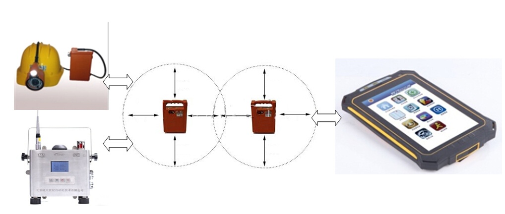 該系統采用無線連接方式的信號中繼與傳輸,應急通信網絡的通信距離可達20公里。無線通信網絡采用自組織、自愈合方式快速形成多跳鏈狀或網狀網拓撲結構,無線通信距離不小于2000米,具有快速部署、高帶寬、低時延、可靠性強等特點。井下救援人員或工作人員,通過佩戴礦用本安型平板計算機、配套的低照度攝像頭自帶語音通話、無線中繼器、多參數測定儀等裝備,將現場的實時圖像、語音、環(huán)境參數等信息實時回傳到指揮平臺,調度指揮人員可以實時了解現場情況,并對現場人員進行調度指揮。