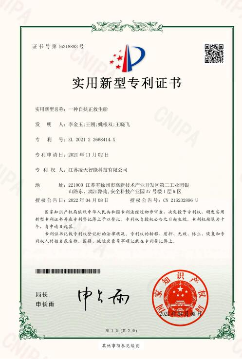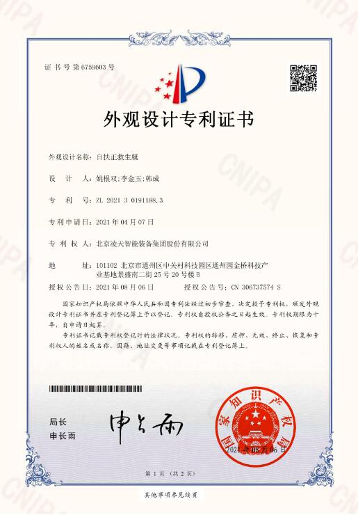 1. ★自扶正功能:將自扶正激流救生艇閑傾90°后手動釋放,能自動恢復到正常狀態,扶正后人員安全,扶正后不影響整艇的任何功能。
