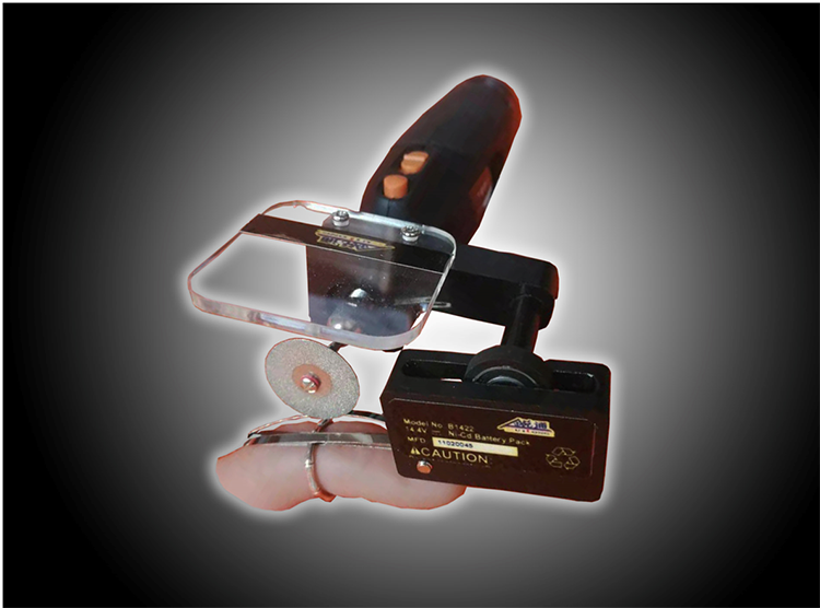 指環(huán)切割器是便攜式戒指指環(huán)剪切破除輕型破拆工具裝置,采用電動、手動等多種工作方式破拆摘除戒指環(huán)。操作簡單安全快捷,不會傷到手指,可切割不銹鋼、鐵、金、銀、銅、鋁、玉、瓷、玻璃及復合材料等。